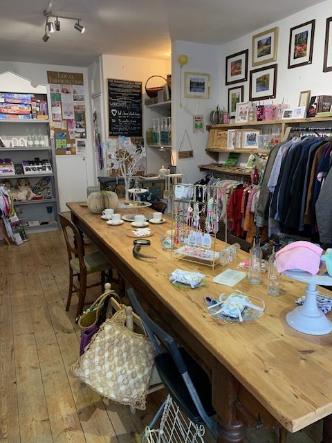 The shop allows local artists and artisans to showcase and sell their work, including original artwork, framed photography of local landscapes, painted glass, unique greetings cards and bookmarks, jewellery and pottery, aromatherapy and second hand books.