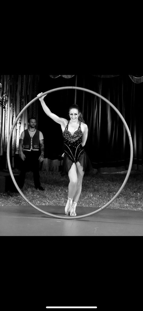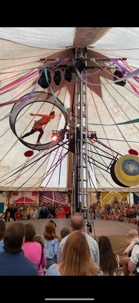 Fools Delight circus show is a family affair. Lil Rice, raised in a circus family, sets up the big top in her father Matthew Rice’s garden in Bampton. As Nell Gifford’s niece, founder of Gifford’s Circus, Lil performed alongside her aunt before taking over as producer in 2019. She launched Fools Delight Circus in 2022 to continue the tradition.