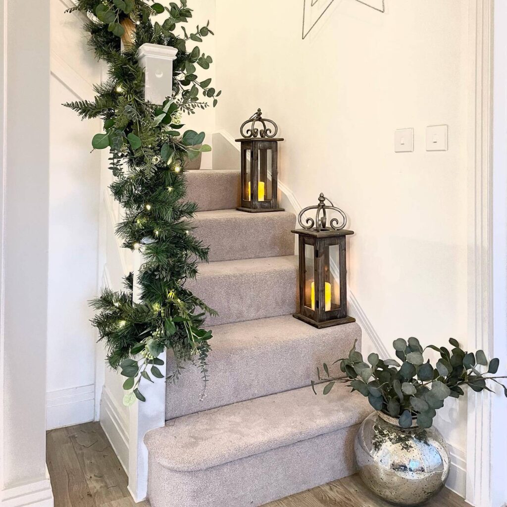 • Windows and banisters: Frame windows or wrap stair banisters with garlands to spread cheer throughout.