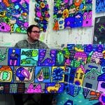 Kev Munday’s positive, vibrant artwork inspired by people-watching and the everyday will be unveiled at Reading’s Oracle as part of Reading Fringe Benefits, 24th-29th July
