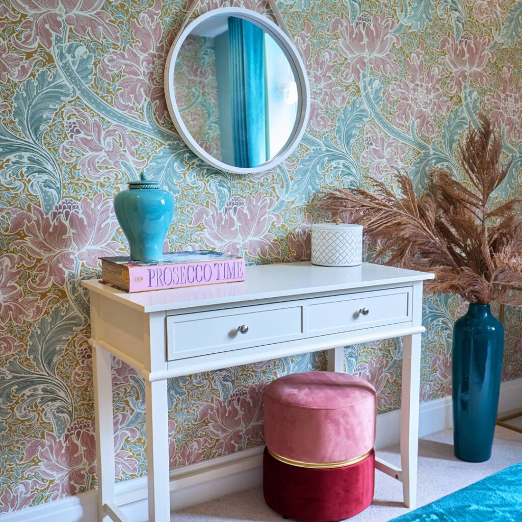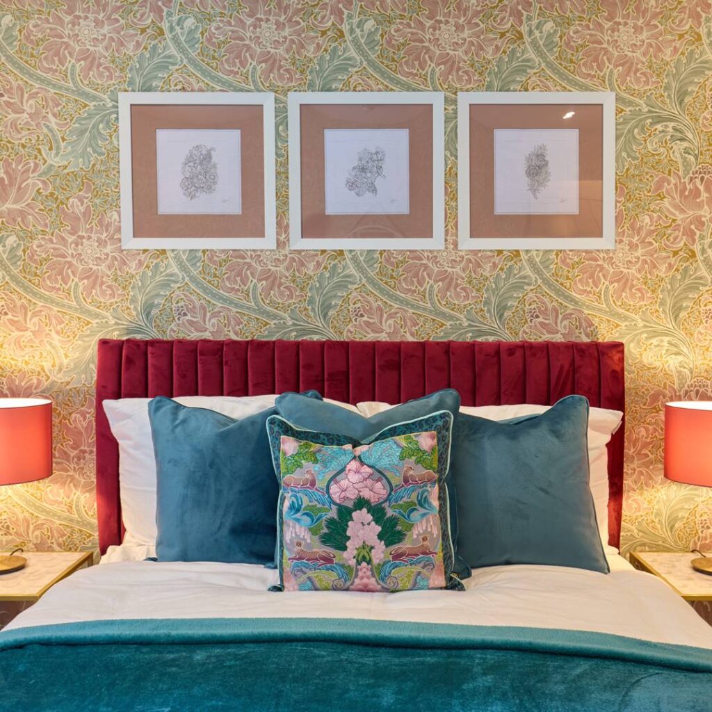 This – we found out recently – is what happened with Williams and May Morris. When May Morris took over the business at the beginning of the 20th century suddenly it became a different and very successful proposition. What Hermione’s been enjoying with the installation in Surrey is that people come over and go “oooh gosh!”. There is that slight assumption that a Laurence Llewelyn-Bowen interior is going to be too tricky to live with, too many notes, too much colour, too stimulating! But this is good in the context of Rangeford. To everyone who’s said ‘ooh I actually love this’ she can say ‘yes that’s because it’s Hermione Llewelyn-Bowen, not Laurence! Hermione believes in a more holistic way. She feels that what she’s doing with my pattern legacy is to create spaces that have energy and vibrancy but aren’t necessarily full of… ‘poisonous looking weedy things’ as she calls them.”