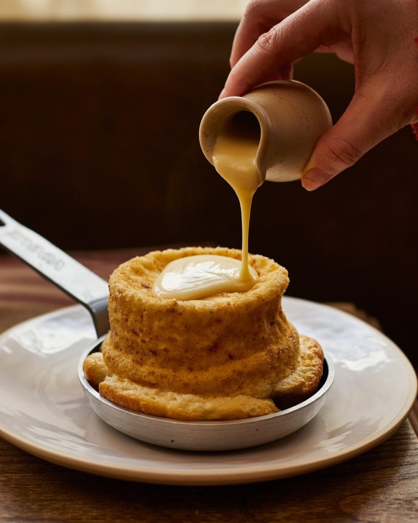The dining room now includes a bright garden room with views over the transformed riverside garden. With 213 indoor seats, the pub offers spaces for every occasion. The menu changes seasonally and matches Heartwood’s three-star rating from the Sustainable Restaurant Association, the highest possible. Highlights include the signature twice-baked cheese soufflé with rich Coastal Cheddar sauce — perfect for special occasions or when you just want someone else to cook. Breakfast guests enjoy a hearty spread of continental and traditional cooked dishes.